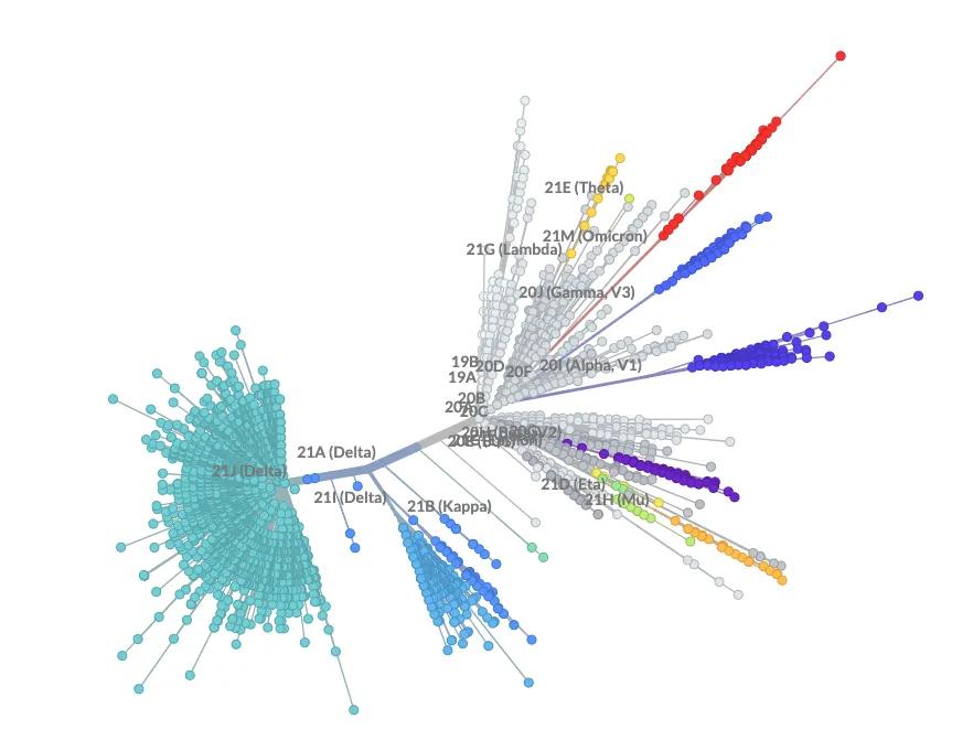First off, let’s look at this Pretty-But-Terrifying-Image of the genetic sequencing of all the known variants of COVID19.